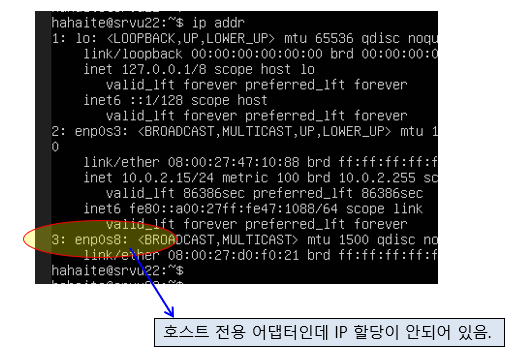 이에 (위의 경우) enp0s8 에 IP 를 할당해 준다.